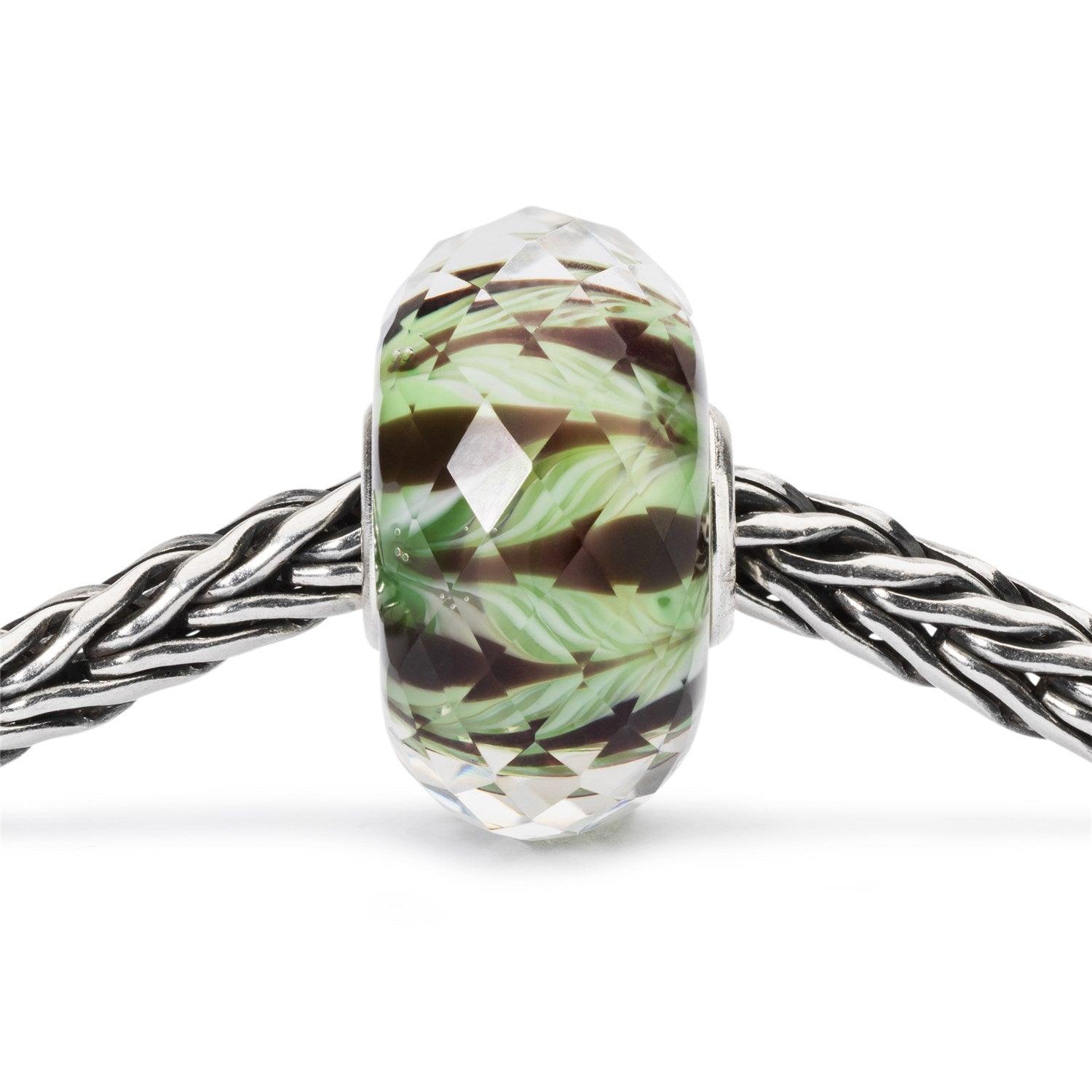 The Wild Jungle Bead reflects the light off the beautifully cut Murano faceted glass.